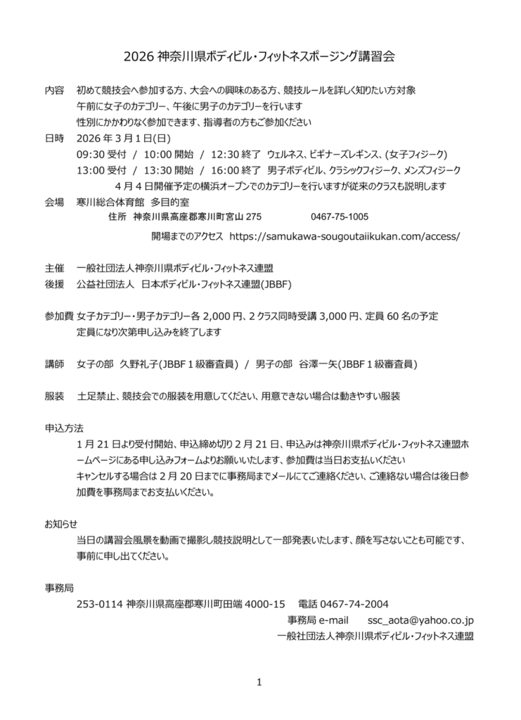 今年もいよいよシーズンに向けて動き出す時期になりました。3月1日(日)、ポージング講習会 を開催します。